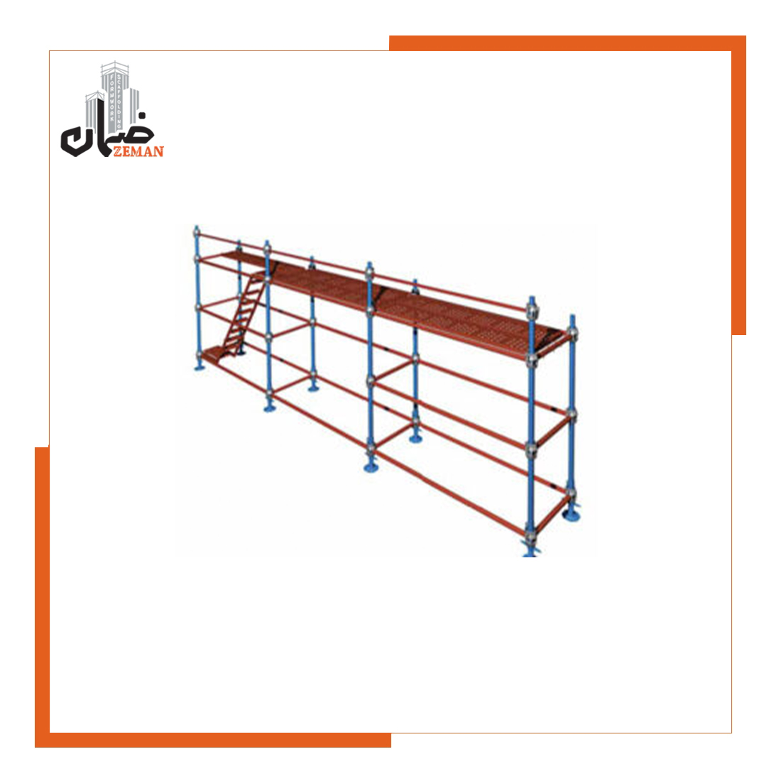 پایه عمودی (Standard) | لوله سنگین با کاپهای پایینی جوش داده شده در فواصل استاندارد (معمولاً ۵۰ سانتیمتر). | عضو اصلی انتقال بار عمودی به زمین. |